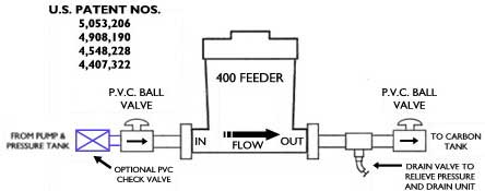 Install P.V.C. check valve BEFORE the feeder if water is used after pressure tank and before feeder inlet.